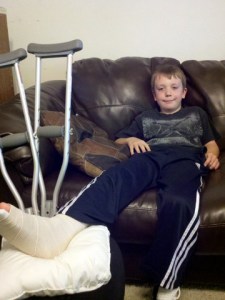 We went to his follow-up appt yesterday, and the doc is concerned about how the growth plate area looks on the x-ray & the fact that it’s still tender in that spot. So, we’ve got to visit the orthopedist. He was disappointed to leave the office still in crutches, but the doc did a good job of explaining that we want to take good care of the growth plate and be sure that it heals properly, if it is damaged, that way, he doesn’t have any problems growing big and tall like his Daddy (who stood 6′ 5″, if I recall correctly).