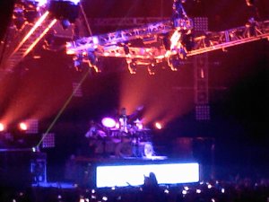 I got a pair of tickets, so I took my 17yo godson with me. He’s much cooler than me, as you can well imagine, 😉 and although he sat with me for a little while, he pretty much stayed down on the floor with the rambunctious crowd while the old lady sat in a real seat with discretely-placed cotton balls in her ears. (The cotton balls were perfect, because I was still able to enjoy the music without suffering ill effects later.)