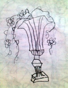 My kids like to doodle and sketch during church, and I don’t mind because it keeps them quiet (most of the time, but not always – as those who sit around us regularly can attest, but I digress …). Recently, one of the little guys decided to draw a potted fern that was on the stairs in front of the stage.